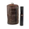 of conventional form with six tails, with red and white diced headband, inside the original black toleware case, the top painted 'Argyll & Sutherland Highlanders', with a white feather plume, also in an original tin case