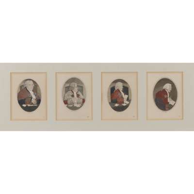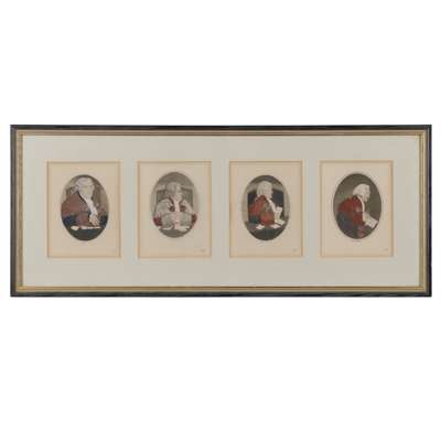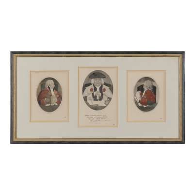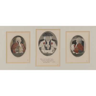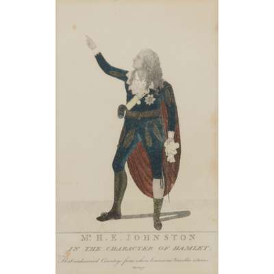 mostly coloured; mounted and framed, of various themes including religious, ecclesiastical and theatrical; titles including: 'Jamie Duff, an Idiot Commonly Called Baillie Duff', 'Geordy Sime, a Famous Piper in his Time', 'Generous Sportsman', 'Toussaint Louverture', 'Mr H E Johnston In the Character of Hamlet'
