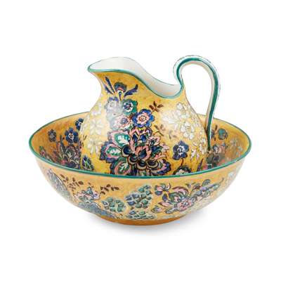 AN UNUSUAL WEMYSS WARE EWER AND BASIN