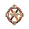 of shaped oval outline with varicoloured agate panels, centrally set with a saltire cross and crown similar set, with a hinged pin and safety chain