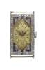 the hexagonal dial with Arabic numerals, within a geometric scrolling surround set with borders of calibre cut sapphires and single cut diamonds, with scroll engraved borders to the side of the watch head, with fitted case stamped BOUCHERON...PARIS