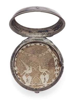 The Belle of Mauchline, as she was once known, had a remarkable memory for quoting verse and Burns often read his work to her and greatly valued her opinion. Despite his famous promiscuity, Jean remained his true love to the end of his days, a token of their affection can been seen in the hand pierced paper decoration found in the back of the watch case, displaying the lovers initials under two love birds. His love for her the subject of many of his poems; 'There's not a bony flower that springs; By fountain, shaw or green; There's not a bony bird that sings, but reminds me 'o my Jean.'