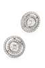 each claw set with a round brilliant cut diamond in an open double border of small round cut diamonds, with post and butterfly fittings