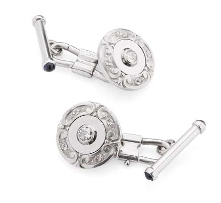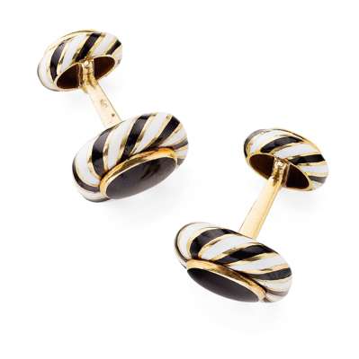 Royal Company of Archers Interest - A pair of 9ct gold and enamel cufflinks