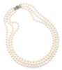 A triple-strand pearl necklace