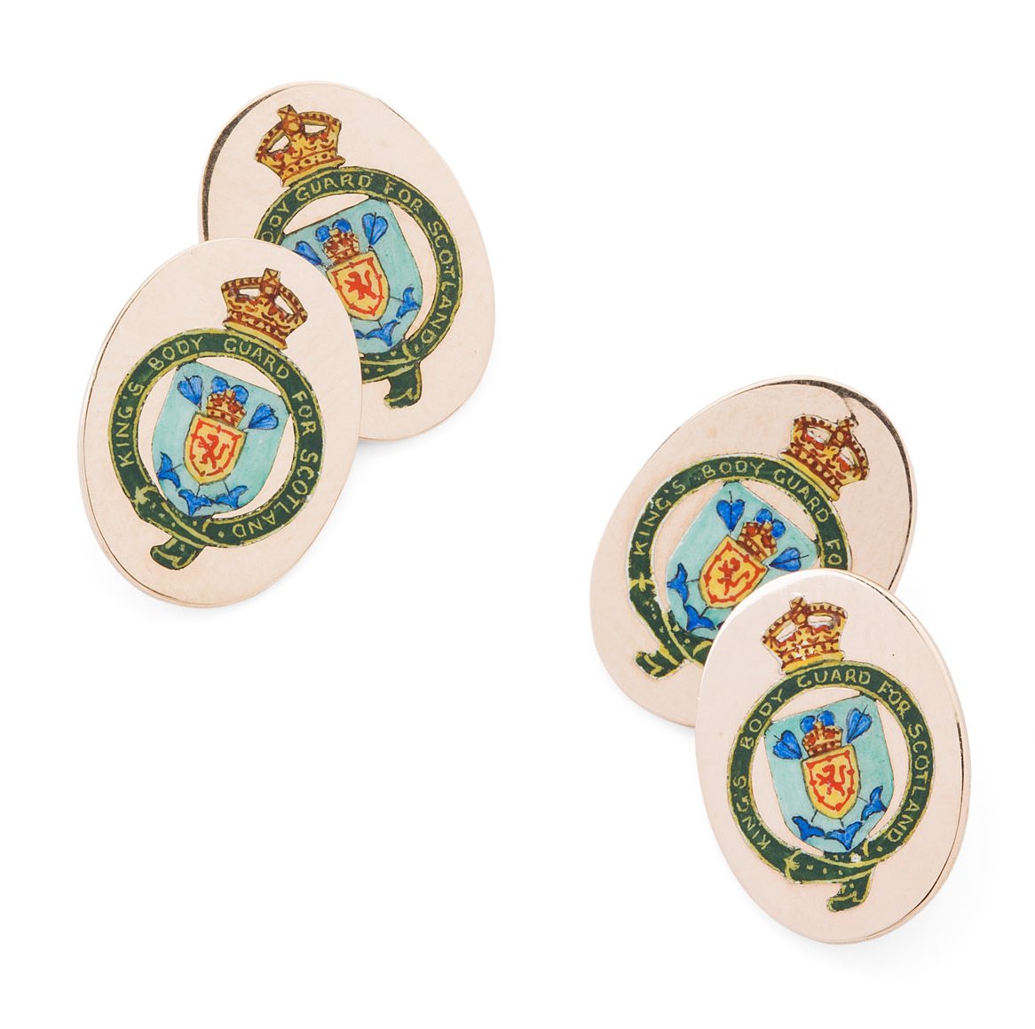 Royal Company of Archers Interest - A pair of 9ct gold and enamel cufflinks