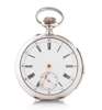 the dial with main Roman and subsidiary Arabic numerals, subsidiary seconds dial, gilt hands, plain case, engraved Brook and Sons as retailer, lever movement, striking on two gongs