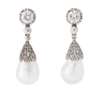 A pair of diamond and cultured pearl ear pendants
