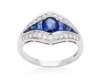 An Art Deco style 18ct white gold mounted sapphire and diamond set ring
