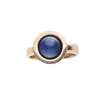 14ct gold, circa 1970, the raised collet set cabochon, tapering onto the plain gold shank
