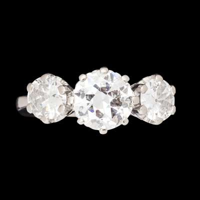 claw set with graduated round brilliant cut diamonds, with scroll pierced gallery, hallmarked for London 1996, sponsor's mark SM