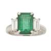 Ring size: M/N, known weights: emerald 3.70cts, diamonds 0.38cts and 0.41cts