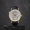 18ct rose gold case, automatic movement, silvered dial, sweep second hand, rose gold hands and baton indicators, power reserve arch, date, second time zone with day night indicator, city indicator arch, hinged cover to sapphire back, sapphire crystal, crocodile strap, gold deployant fold over clasp, leather covered presentation case, outer box, bought circa 1998