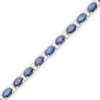 claw set in white metal with alternating claw set oval cut sapphires and pairs of similarly set round brilliant cut diamonds, with a concealed clasp and safety clips