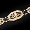 attributed to Lucien Gautrait, composed of large pierced octagonal and smaller similarly shaped links, each set with either small pearl or old European cut diamond, in an oval border of rose cut diamonds, flanked by foliate swags, outer pale lilac enamelled and beaded border, additional rose cut diamond, small pearl and belcher links, concealed clasp and additional safety clip, stamped with French control marks and signed L. GAUTRAIT