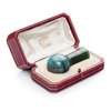 circa 1920-30, aventurine quartz circular terminal, crystal spacer and tapered green hardstone socket, contained in a fitted Cartier case, red tooled and gilt leather