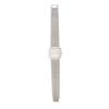 the slight rounded satin silvered dial inscribed, the bezel with a border of tapering graduated baguette cut diamonds, integral textured bracelet, fold over clasp, the screw back numbered, 9246A6 169634