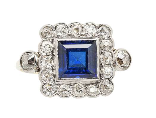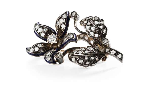 E WOLFE & CO - An 18ct gold diamond and sapphire set brooch