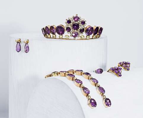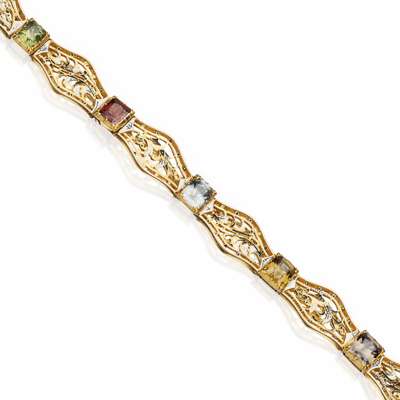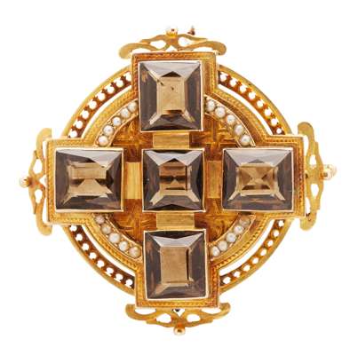 E WOLFE & CO - An 18ct gold and gem set brooch