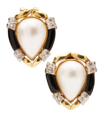 STEPHEN WEBSTER - A pair of 18ct gold pearl and diamond set earrings