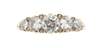 claw set with five graduated old round cut diamonds, with small diamond chip accents and a scrolling gallery, to a plain yellow metal shank stamped 18ct