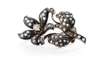 set throughout with small rose cut diamonds, the petals with blue enamel border, claw set to the centre of the flower head with a single cushion cut diamond