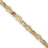with applied CG mark, composed of eight pierced and engraved panel links with enamel detail and a rectangular cut gem uniting each panel including sapphires, citrine, garnet and others