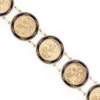composed of five circular links each mounted with a sovereign, the mount with blue ground and floral enamel detail, the clasp with similar detail