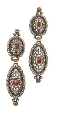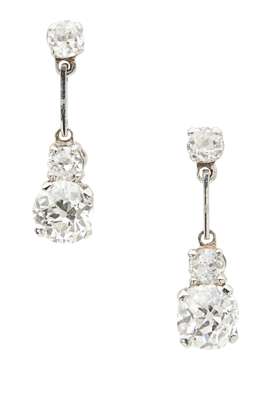 A pair of diamond set pendant earrings