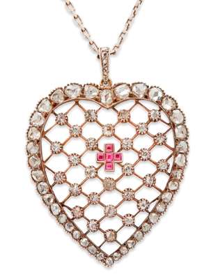 A Belle Epoque diamond and ruby set pendant