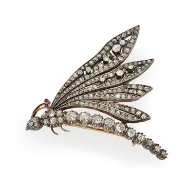 An unusual 1940s diamond and ruby set novelty brooch