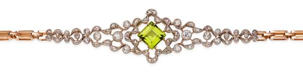 A Belle Epoque peridot and diamond set bracelet