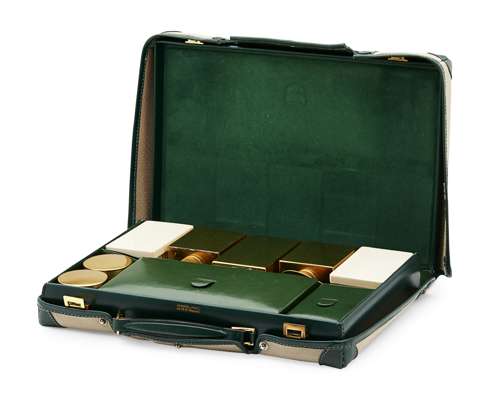 HERMES - A green leather travel dressing case