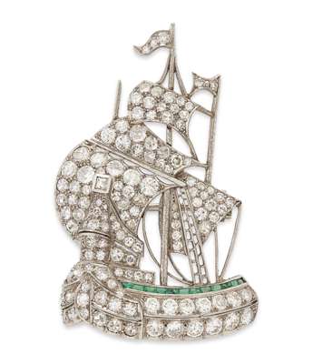 A 1920s diamond set ship brooch