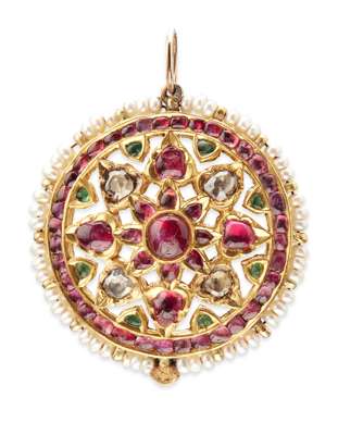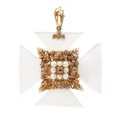 A mid 19th Century gilt and hardstone pendant