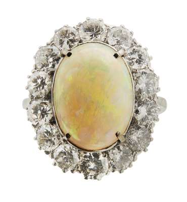 An opal and diamond cluster ring