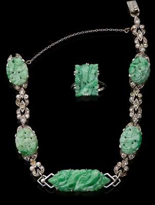 A matched suite of jade jewellery