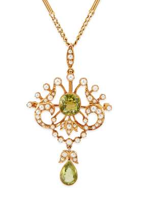 A Belle Epoque peridot and diamond set necklace