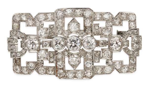 An Art Deco diamond set plaque brooch
