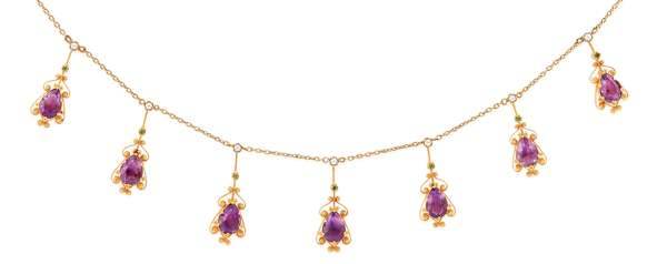 Suffragette Interest - A early 20th Century amethyst, pearl and peridot necklace