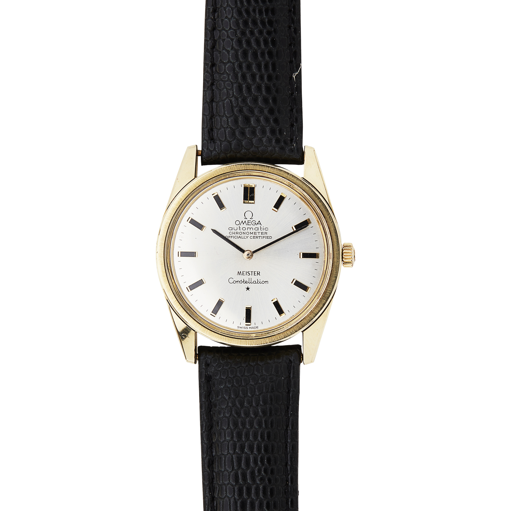 Meister Constellation, gold filled case, silvered dial, automatic movement, leather strap