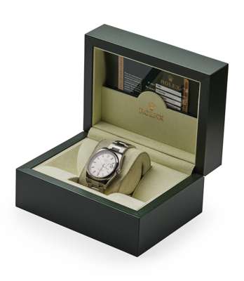 Oyster Perpetual Datejust, Manual movement, Serial no G734830, Montre 115200, silvered dial, sweep second hand, date aperture, stainless steel bracelet, fold over deployant clasp, with boxes and papers, spare link etc