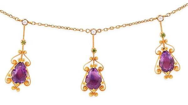 Suffragette Interest - A early 20th Century amethyst, pearl and peridot necklace