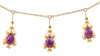 of fringed design, the belcher chain suspending seven drops each set with a small seed pearl, a small peridot and a pear shaped amethyst in a filigree border, clasp stamped 15