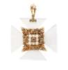 modelled as a Maltese cross, the central gilt section with delicate filligree work, and a central square decorated with seed pearls and a small ruby, glazed panel to the rear, simple loop pendant