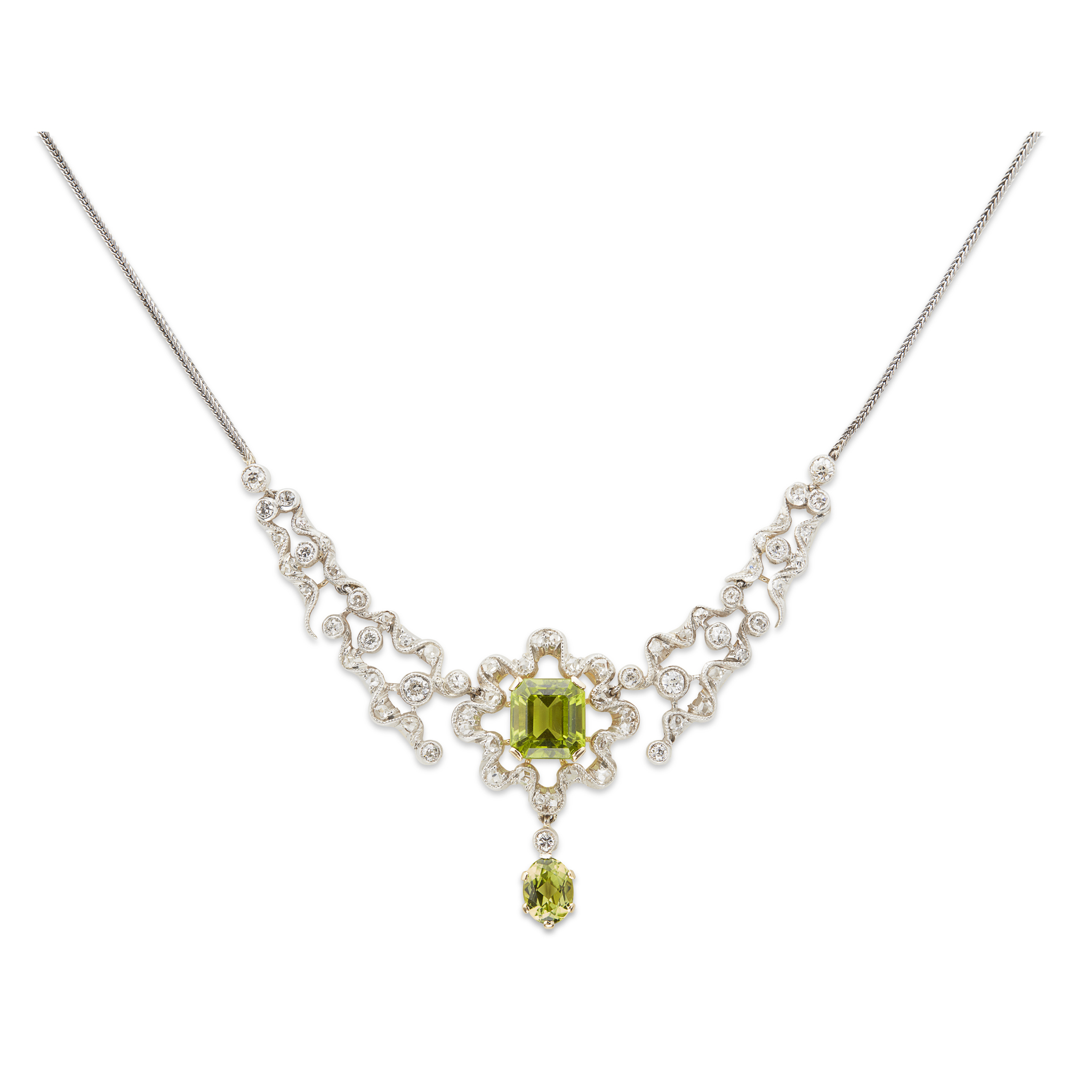 A Belle Epoque peridot and diamond set necklace