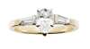 claw set with a single pear cut diamond, each shoulder set with a tapered baguette cut diamond, to a plain unmarked yellow metal shank; with an accompanying report by Gemprint Corporation, dated 10.05.04, numbered GUK1-0016, stating the diamond is D colour, IF clarity