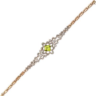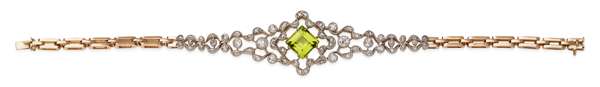 A Belle Epoque peridot and diamond set bracelet