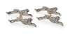 each terminal modelled as a running hare, pave set with eight cut diamonds and a rose cut ruby eye, unmarked