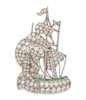 modelled as a galleon in unmarked white metal, pave set throughout with old round and eight cut diamonds, channel set emerald detail